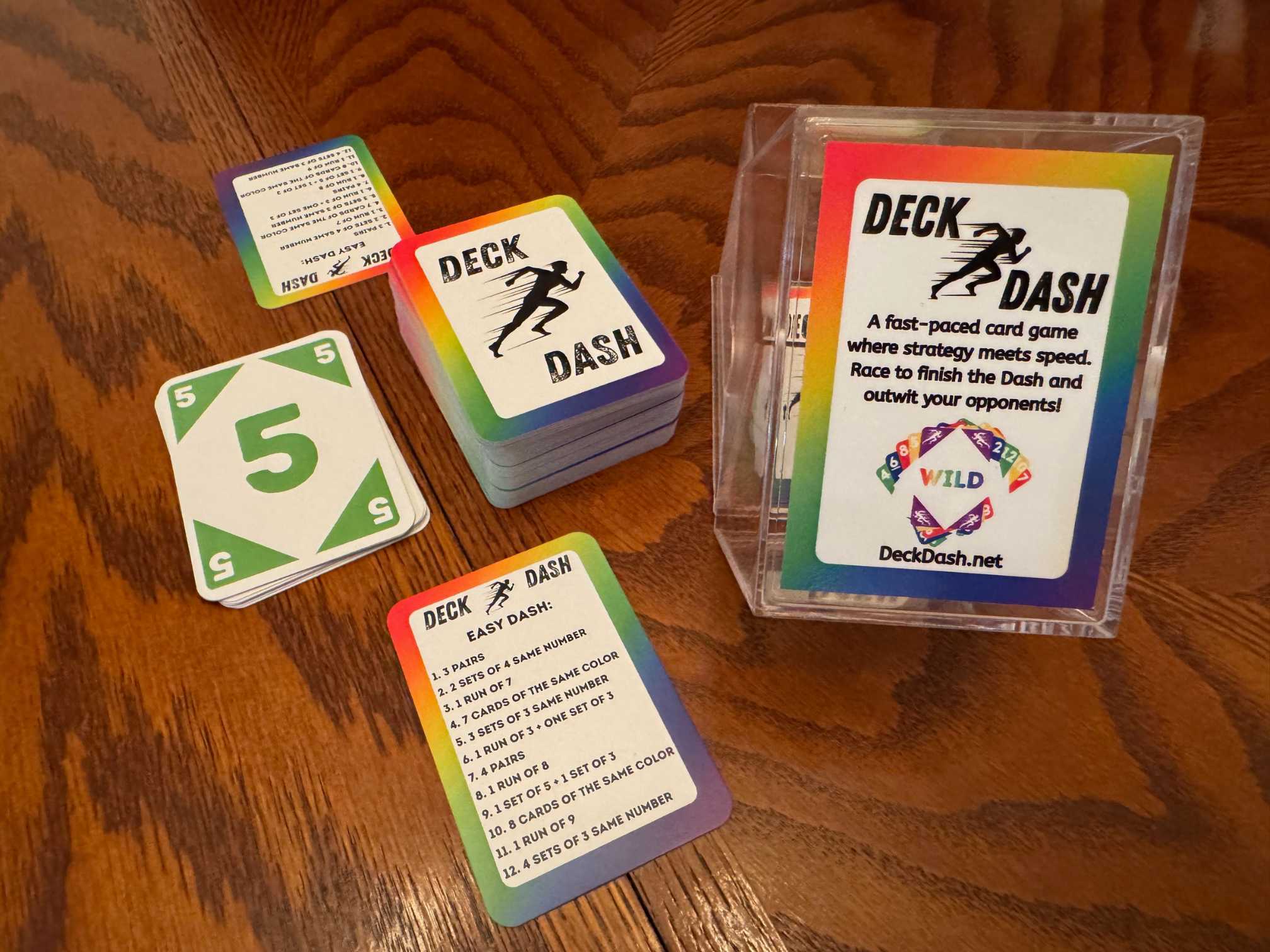 Deck Dash is played in a series of fast-paced rounds where players compete to build “Dashes”, which are specific combinations of cards. The first player to complete the Dash and get rid of all their cards ends the round. But don’t get too comfortable, because there’s always a chance to block, steal, skip, or draw cards and shake up the game! Think you’ve got the perfect hand? Think again! Deck Dash keeps you on your toes!